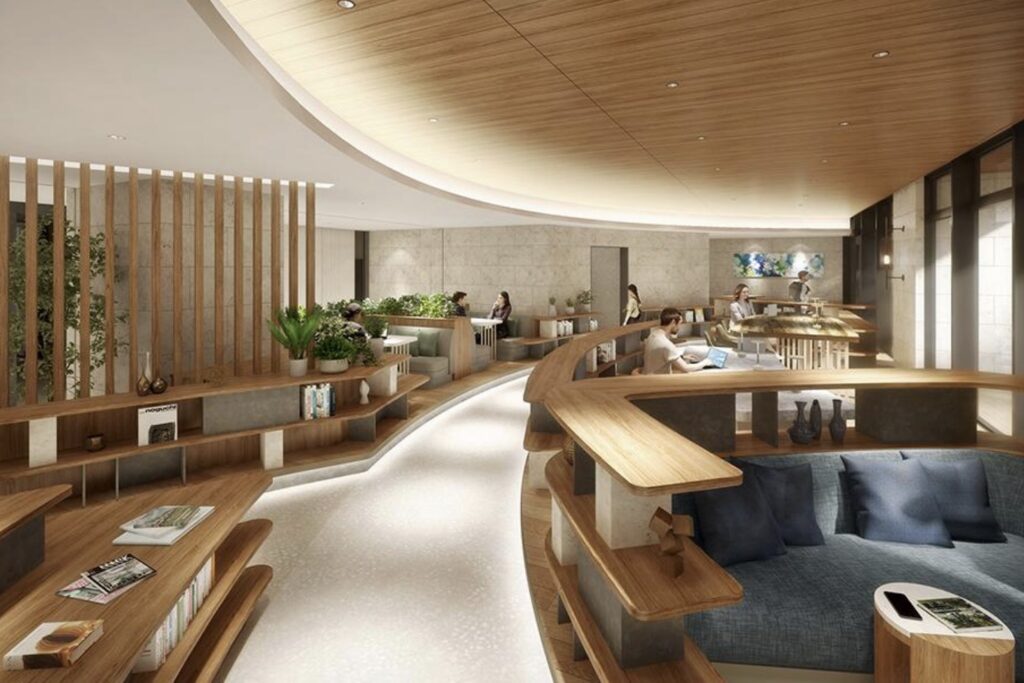 共用施設(3階):クリエイティブラウンジ(テレワーク対応)、フィットネススタジオ、ゲストルーム2室、パーソナルスタジオ、ミーティングルーム、ガーデンテラス。3階の施設は植栽に面しており、緑を感じながらリモートワークができる設計です。