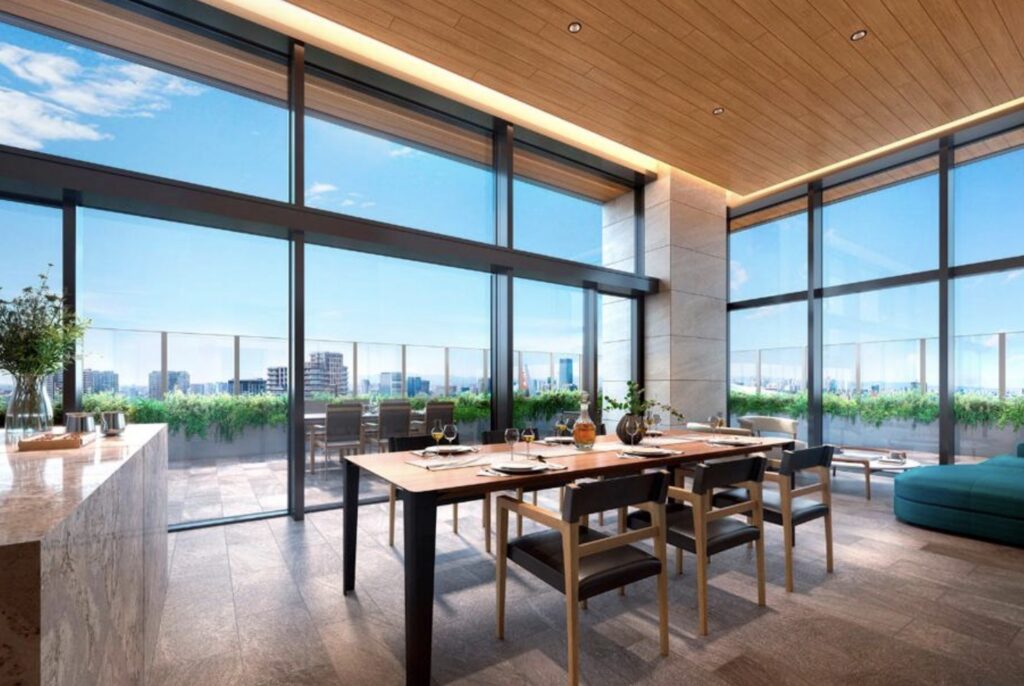 共用施設(48階・最上階):スカイラウンジ、スカイパーティールーム、スカイデッキ(屋外)、シアタールーム。最上階をプレミアム住戸ではなく共用施設に充てるという太っ腹な判断は、住民満足度を重視した証。スカイデッキからの眺望は湾岸タワマンの中でもトップクラスになるでしょう。