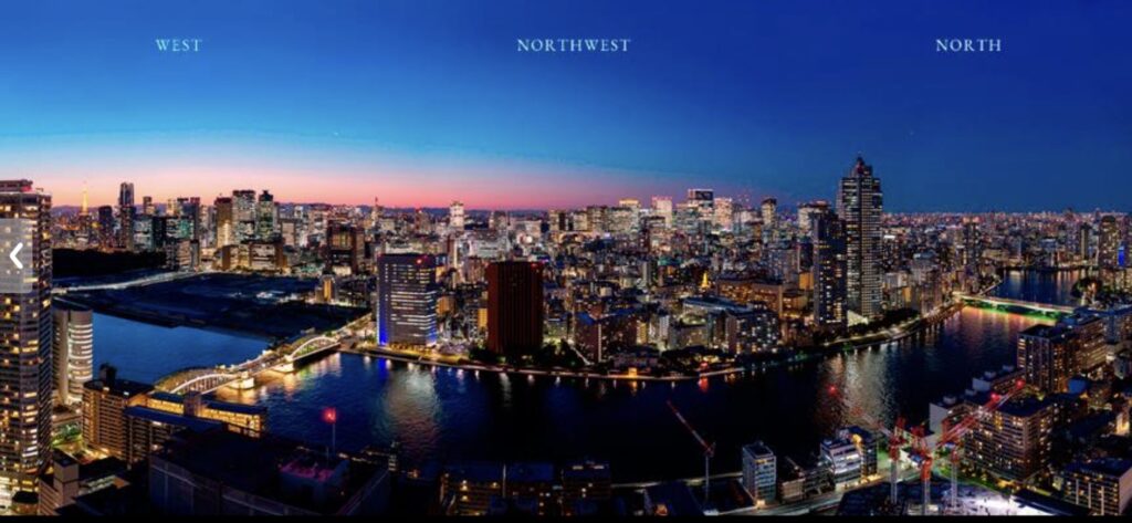 北側にはグランドシティタワー月島(58階建て)が立ちはだかり、セントラルガーデンの48階でも抜けることはできません。また35階以下ではサンシティ銀座EAST(32階建て・119m)が視界に入り、北西向きの低〜中層階は圧迫感を感じる可能性があります。33階以上の高層階なら抜けが得られますが、その分倍率も上がります。南西向きの東京タワービューは方角・階数によっては見えない部屋もあるため、購入時は眺望の確認が必須です。